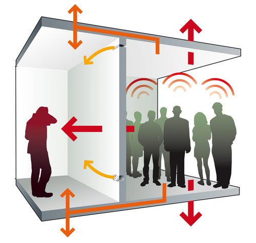 Evita que los sonidos entren a un recinto o salgan de él. Se usa en viviendas, así como en locales de ocio y restauración. Aísla del ruido aéreo, como la música, y demás sonidos que se transmiten por el aire.
